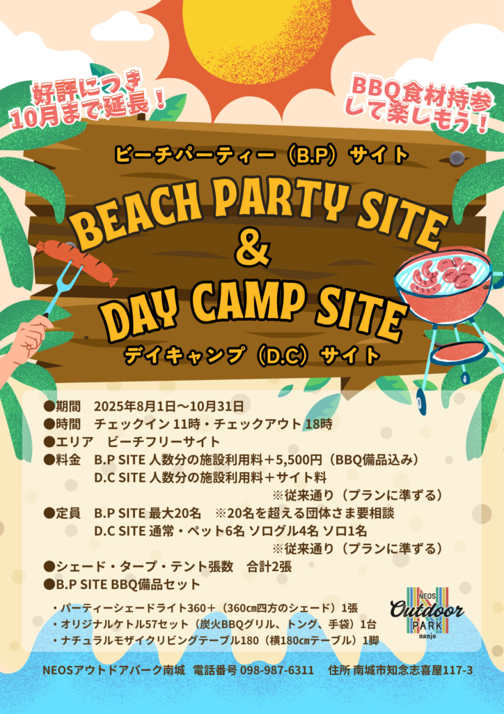 好評につき10月まで延長!BBQ向けビーチパーティーサイト&デイキャンプサイトがついにOPEN🙌